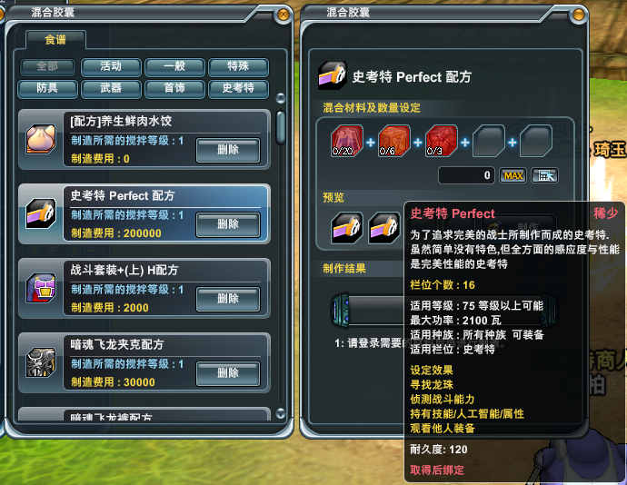 满级之后可以到天神殿找混合商人制作史考特 Perfect(除天下第一史考特外最好的探测器)