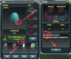 打开宠物面板后,点击召唤和生成技能可以随机获得一个宠物技能如队伍召唤、复活、瞬间移动等等