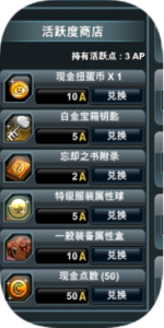 活跃度点可在活跃度商店换取相应的道具