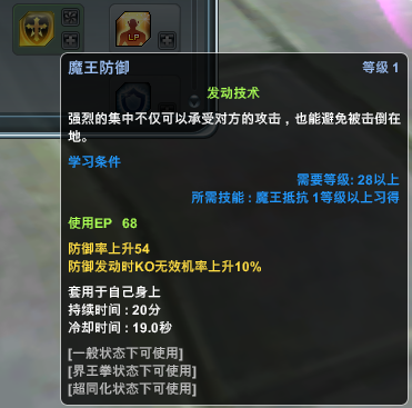 可以通过提升防御技能的等级 增加防御的持续时间和防御成功的概率 但对大部分职业来说很鸡肋实用性不高